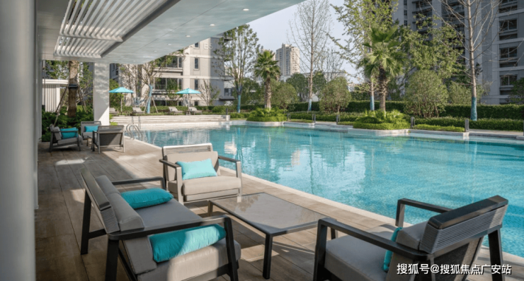 泳池构架以白色为主色系,蔓延的水系丰富了视觉层次,时刻上演假日时光。居者随手挽起一泓碧水,感知静谧晚风拂来,柔和视觉,亦舒缓心境。