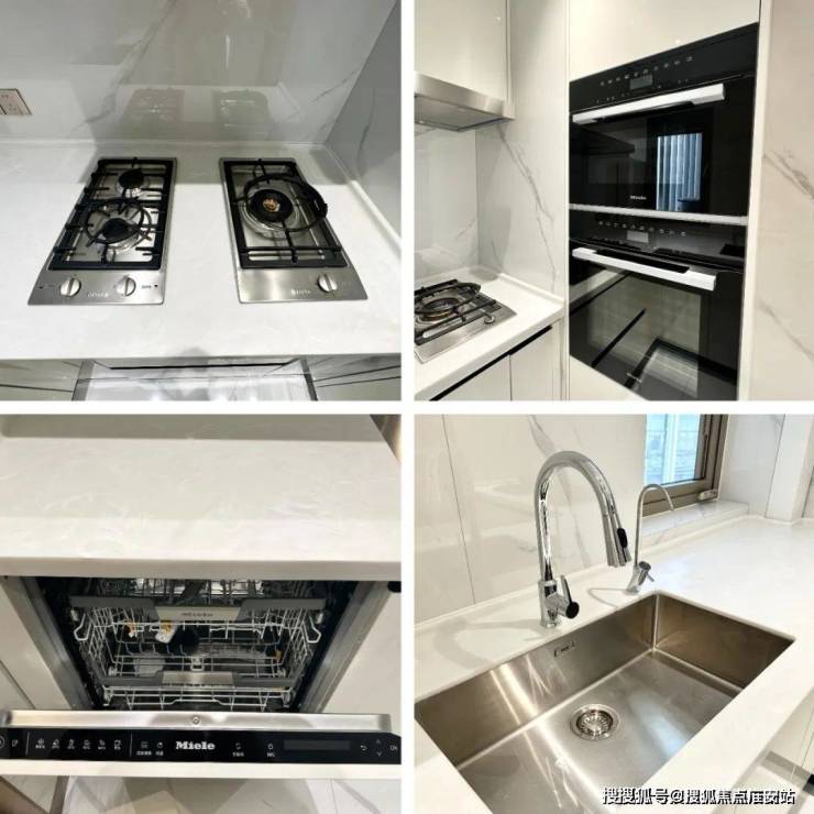 厨房电器采用美诺的5件套(抽油烟机,燃气灶,洗碗机,蒸箱和烤箱),橱柜品牌是博洛尼,弗兰卡水槽搭配抽拉式水龙头相当人性化!