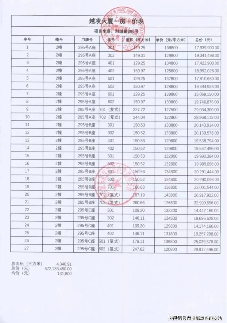 项目一房一价表▼