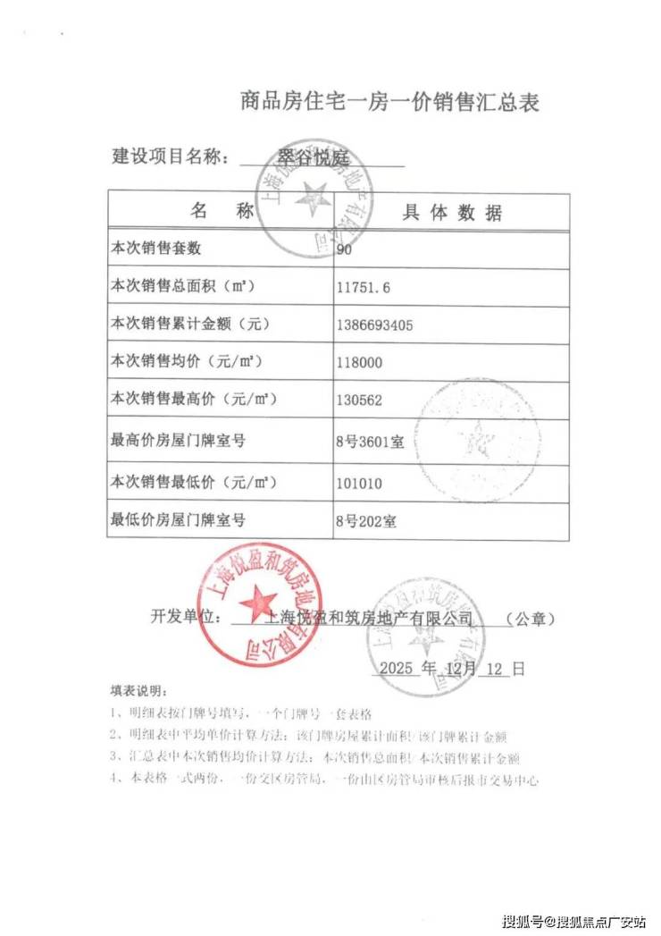 上期一房一价表: