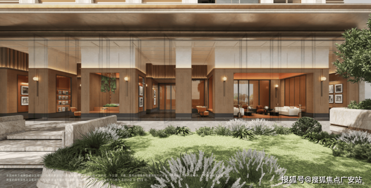 项目还有一个超大亮点,就是东侧的主大门。不同于普通项目的门头设计,项目四进式的设计,从「玖系」非常经典的隐奢门头入场,再到公馆草坪的仪式感,再到社交聚场的打造,层层递进。