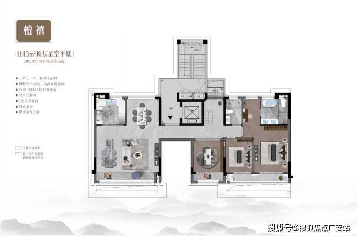 产品定位上,建发房产以"空、象、简、朴"为设计理念,打造三进归家礼序:一进府门致敬城市界面,二进厅堂融合山水意境,三进院落汲取苏州园林精髓。外立面采用浅灰真石漆与铝板,屋顶飞檐设计强化中式韵味,层高3.2米,部分户型配备星空露