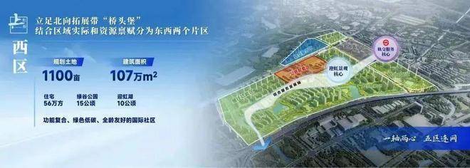 “上虹桥·城市更新区”由嘉定区与上海地产集团共同推进,采用整体开发模式,品质和界面将得到更大的保障。项目一期占地面积约2500亩,分为东西两个片区。