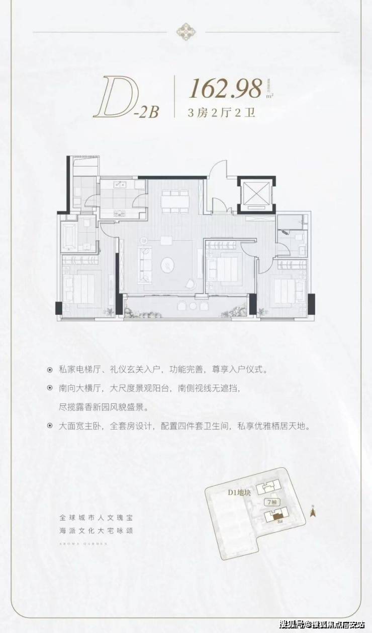 定位:约3.8万㎡纯粹高层住宅,3梯2户设计,圈层纯粹。