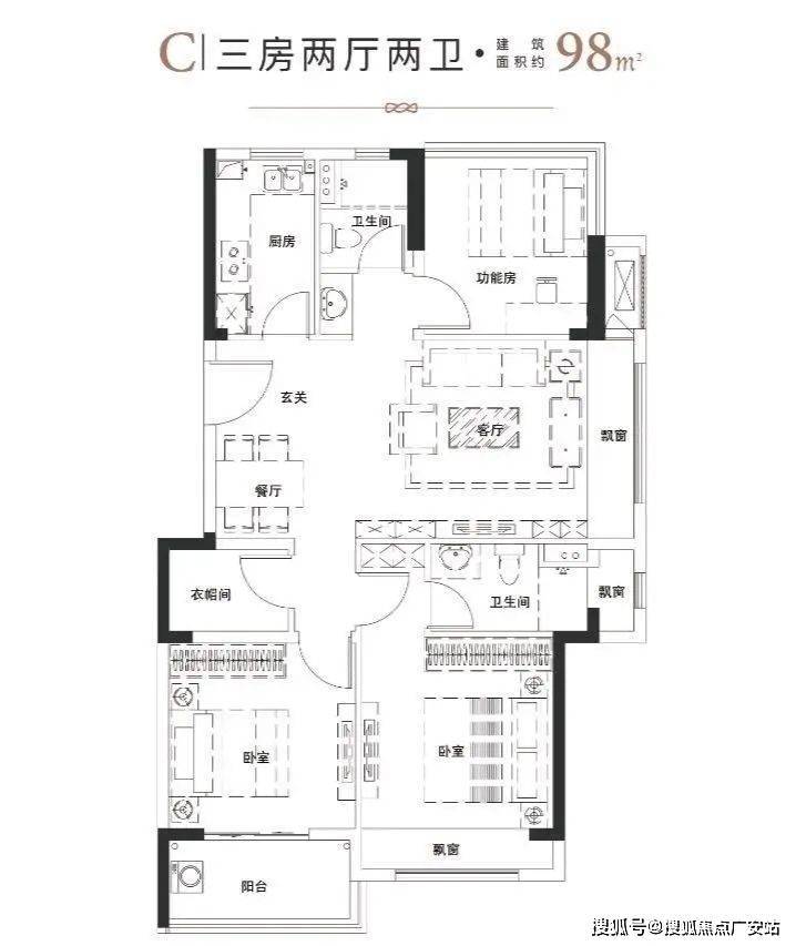 | 建面约98㎡ | 三室两厅二卫