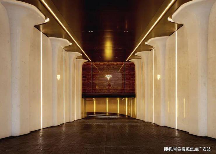 6、社区含“奢材”量很高。门庭延街的外立面,以精工定制弧形米色石材为主调,镶嵌典藏级老虎玉大理石,点缀古铜色现代海派艺术感灯器,整体呈现出百年海派的贵雅气质。