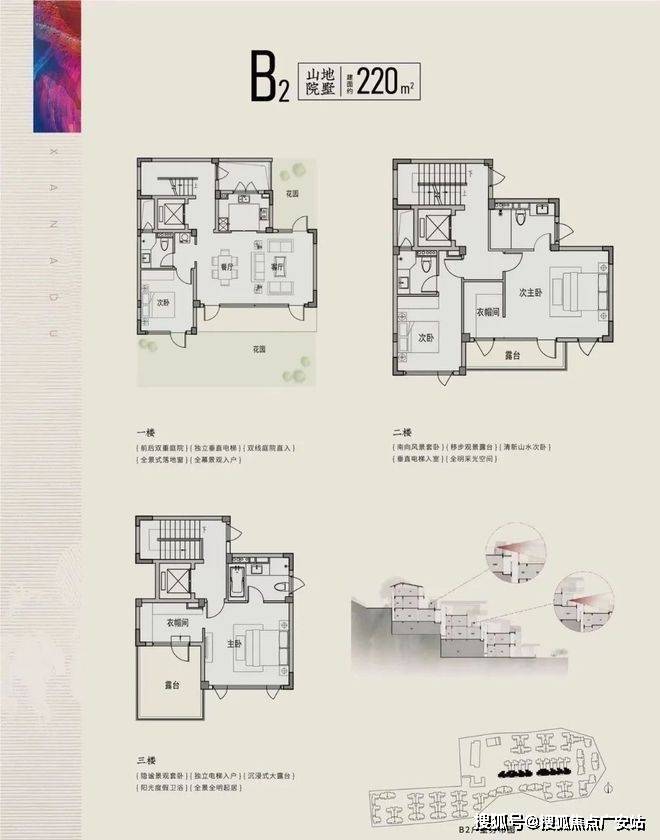 【产品类型】:建面约260-350㎡坡地院墅
