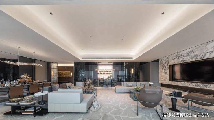 约21米的横向面宽瞬间撑开了城市画框,钱塘江景得以毫无保留的尽情展示,约180方的会客空间则是业主能够自行定义的海绵空间,足够根据其喜好任意布置。