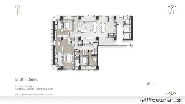 从立面美学,到内部空间,兆丰ESSENCE将大平层的产品力发挥到极致,尤其在这套由东方润园、绿城玫瑰园的同款设计师叶飞设计的建面约560方展示区中展现得淋漓尽致。
