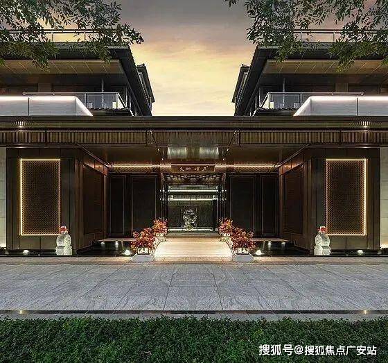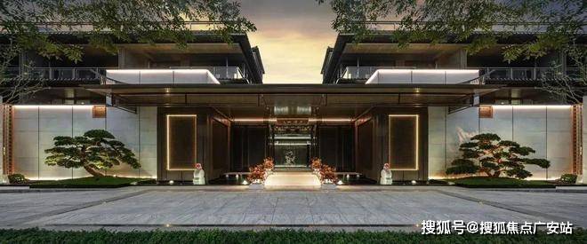 宋式建筑风格,三重屋檐设计融合现代工艺,外立面采用伊朗进口奢石、香槟铝板等高端材料。