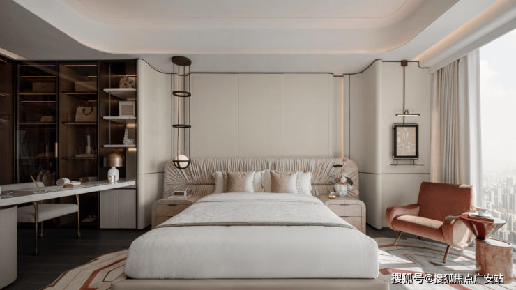 Poly Hongqiao integrates the design techniques of luxury homes. The independent entrance hall and the design of one elevator per household, which would cost tens of millions of yuan to build, are presented here with high quality. At the same time, the full bedroom bay window design, even the kitchen and bathroom with bay Windows, gives the space a high bonus and provides more storage. The design of the balcony connecting to the living room enables customers to obtain more practical usage space and living scenarios. Even the 94㎡ and 104㎡ units can enjoy a broader scale and view. Even the master bedroom of the 124㎡ unit has a 270° panoramic view of a top luxury house in the city.