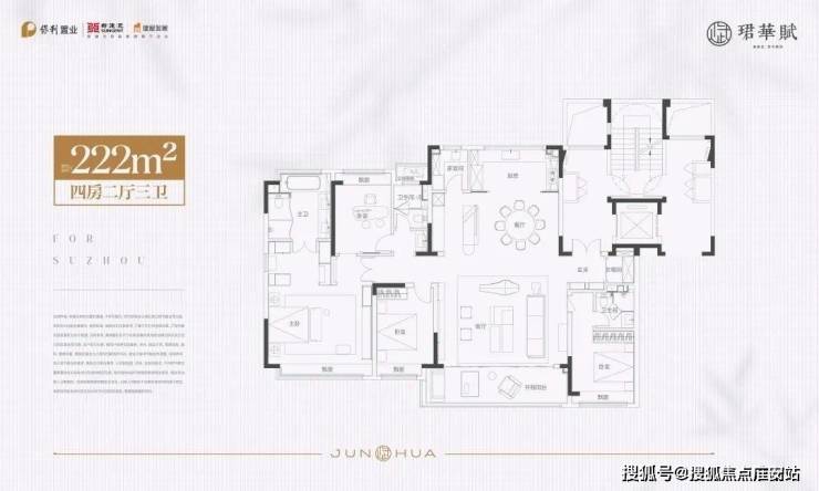 这次加推共3个户型,主力约156/192/222㎡,全是4房起步的大平层。