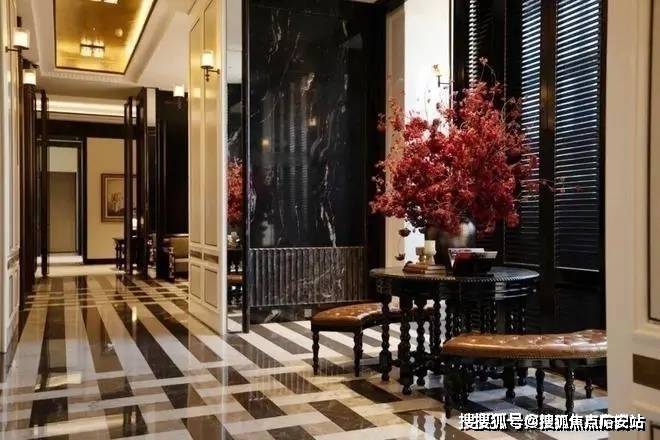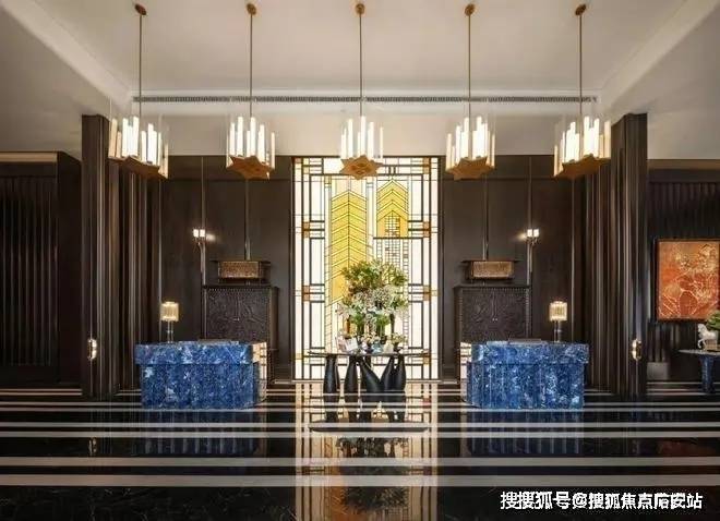 矗立两旁的是进口奢石巴西乌金石打造的大理石柱,庄重典雅.点缀画面中央的是玻利维亚蓝,这是世界上储存量极少的石材之一,被称为奢石中的劳斯莱斯.地面的拼花灵感来自伦敦瑰丽酒店,黑白相间,给我一种神秘厚重的感觉.建发·海阅首府售楼处电话:400-867-3567☎欢迎预约