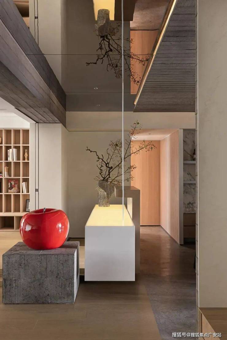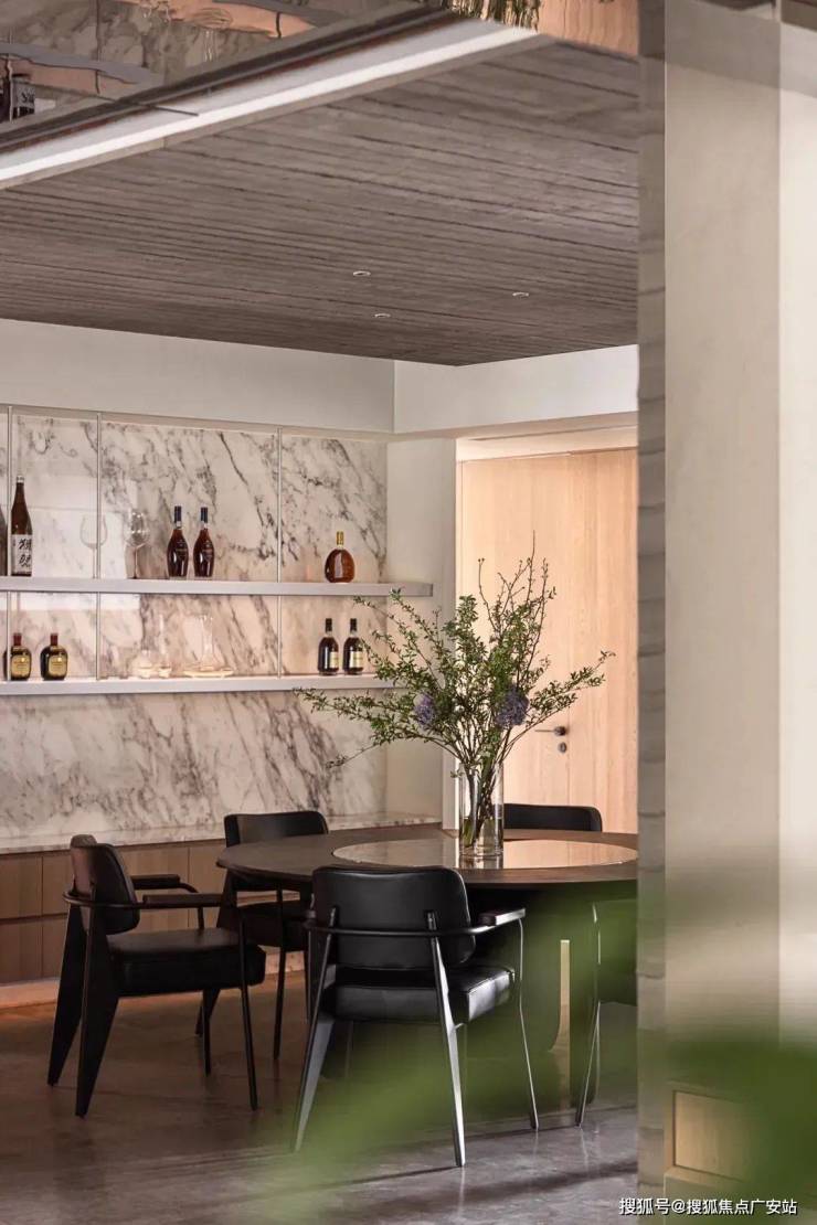 墙面棱角与家具线条直接简练,严谨的秩序中略有灵动之意。家正在理性与感性直接反复拉伸,温暖诠释着“容器”的意义——盛放时间,包容记忆,链接未来。
