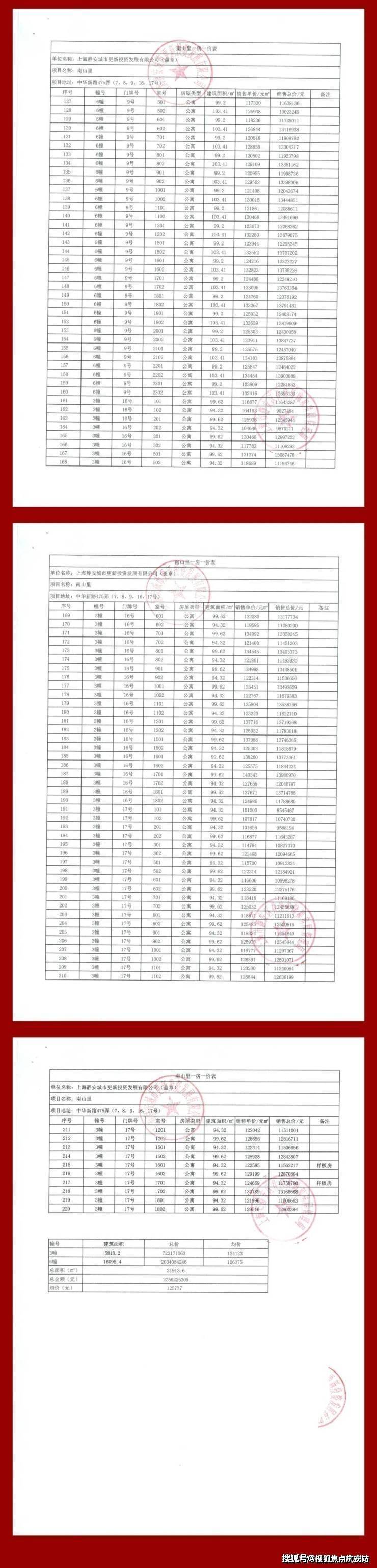 最新一房一价表: