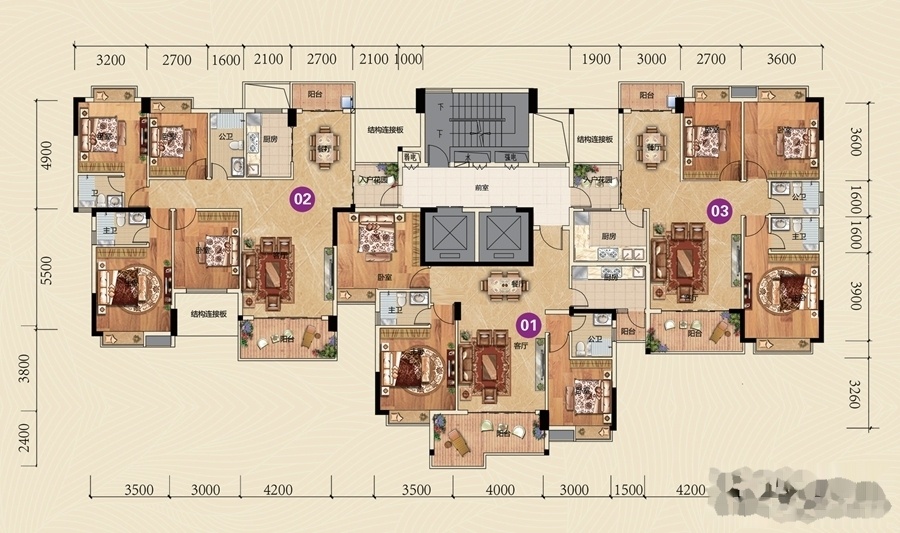 4室2厅3卫-6栋标准层01、02、03户型 3房2厅3卫