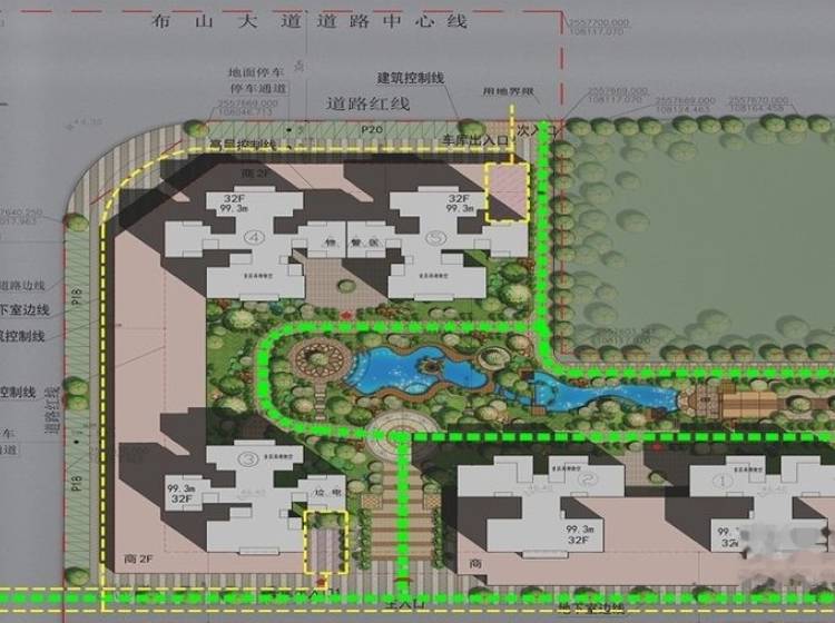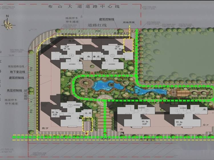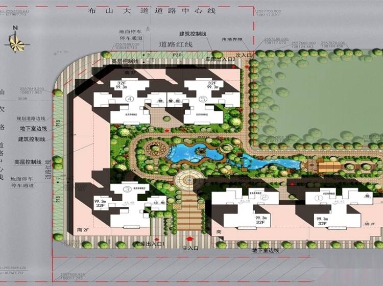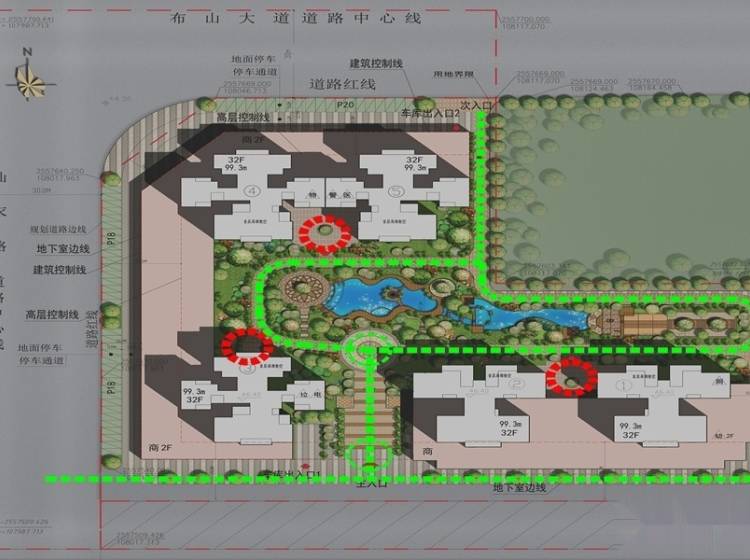 共机动车位1200个,其中地下1094个,车位配比为1:1.5。