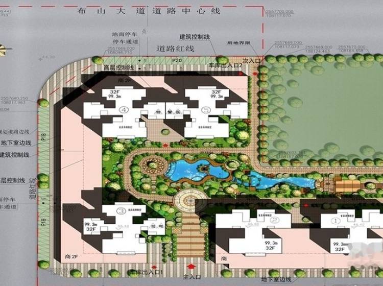 小区内部配套:园林景观、精英幼儿园(两层,在1#楼)、小区游泳池、特色商业街
