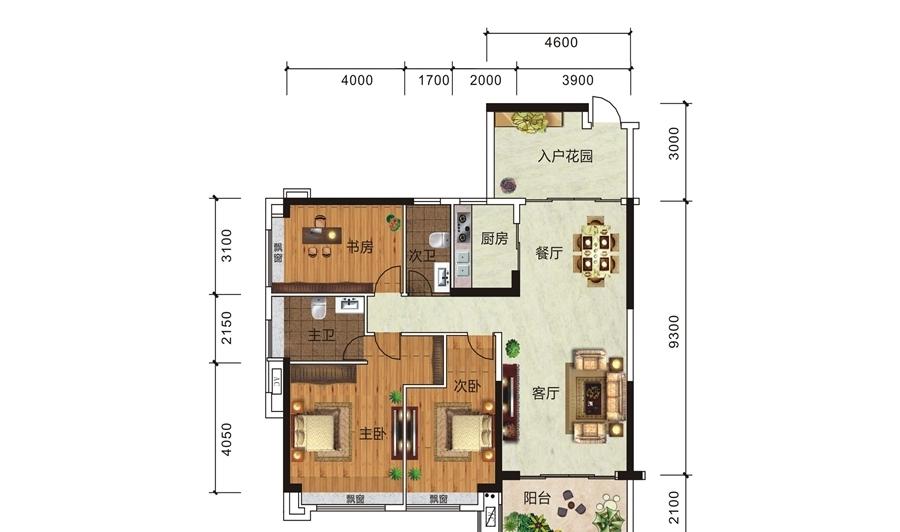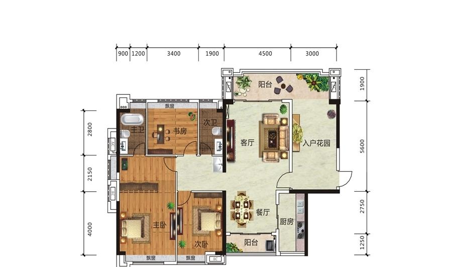 3室2厅2卫-1#2#03、04户型(2+1)房两厅两卫+入户花园