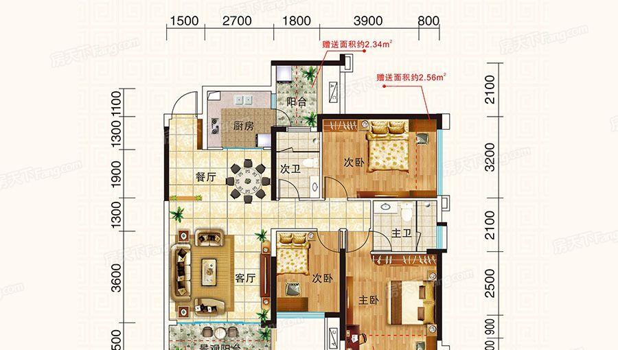 3室2厅2卫-7#楼1单元03户型三房二厅二卫114.02㎡