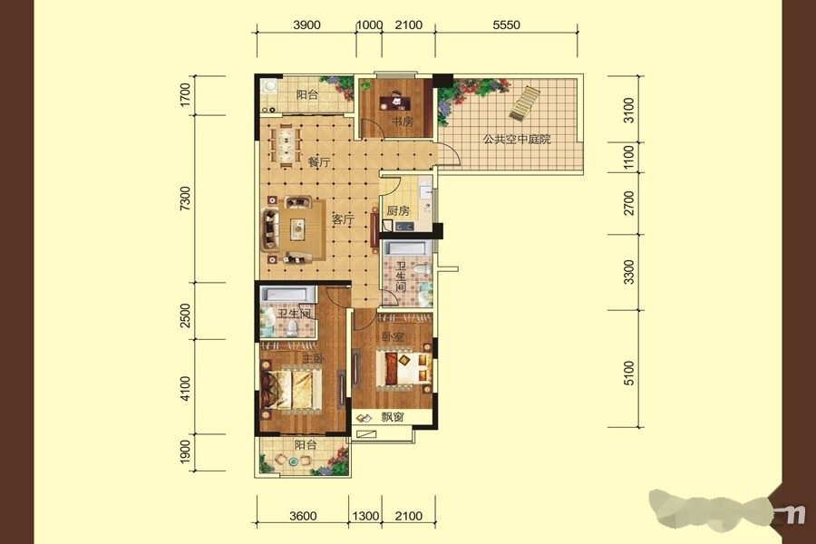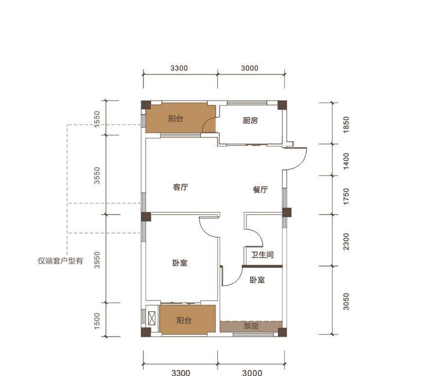 在售 厨卫不对门 户型方正 客厅朝南 飘窗