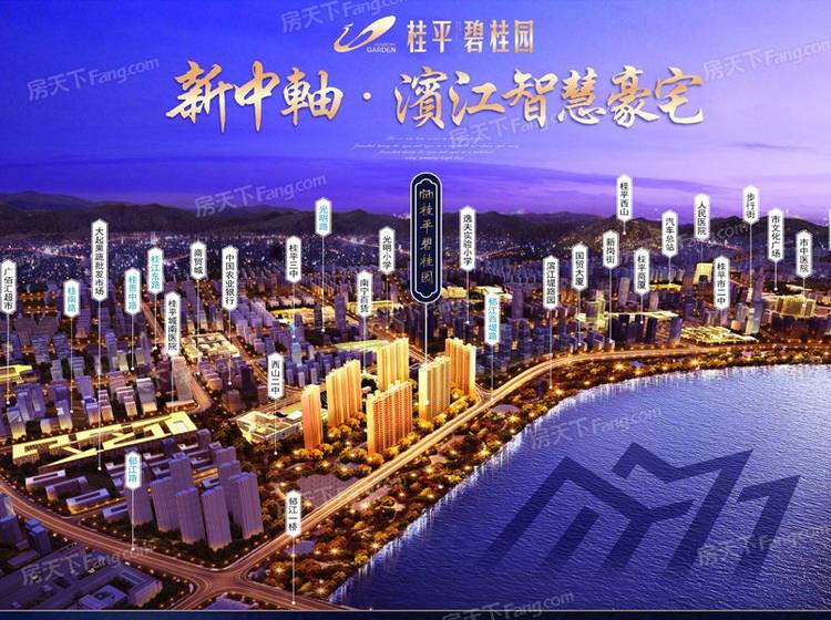 桂平碧桂园位于郁江畔·西山二中旁,占地37亩,总建筑面积约168596平方米。处于城市核心成熟区域,集合商贸、人居、休闲、教育多功能于一身,人口密集,居住氛围浓厚,众多市政配套环绕。周边云集西山二中、桂平三中、逸夫实验小学、光明小学等名校,享全年龄段学区资源,距离南宁百货仅500米远,2公里直达新天地步行街商圈,尽享城市成熟配套,同时紧邻郁江,可享受一线江景资源,坐拥得天独厚的自然景观资源,入则宁静,出则繁华。小区环境优美,私享七重立体园林景观,更有国家一级资质物业贴心服务。