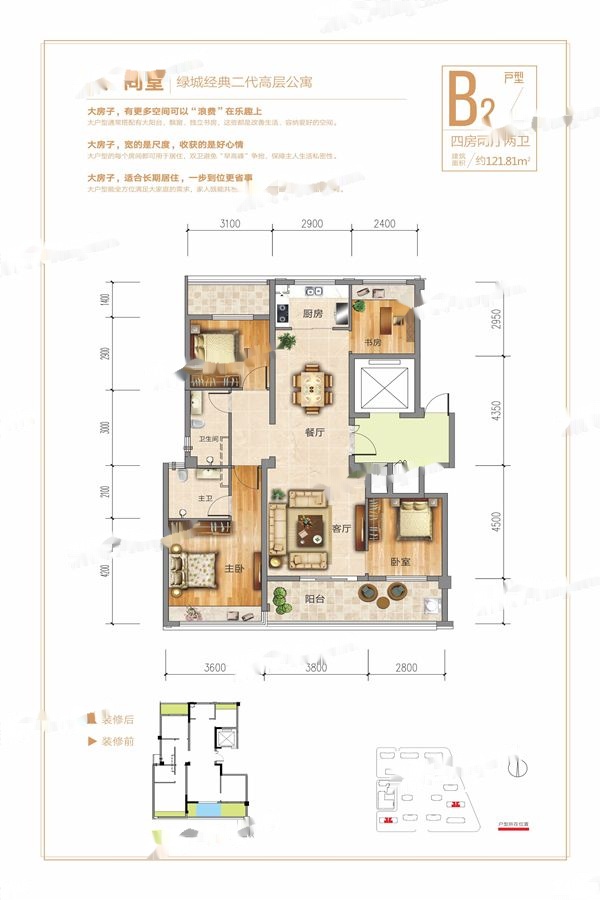 二组团向南居·未来城由14栋15-28层的板式高层建筑组成,共948户。 建筑设计 项目是由“中国豪宅教父”之称的宋卫平先生的绿城集团旗下绿城利普建筑设计院进行产品设计,排名前列次将绿城二代经典高层带到贵港覃塘。整个建筑规划是中轴对称,运用整体营造理念,将规划、建筑、园林景观和室内设计等设计手法相糅合。 通过理念上的升华和设计上的突破,精心打造的一种高端高层公寓住宅产品。 它追求的是更加温馨和谐的人居环境,让业主能感受到生活品质的提升。 第二代高层公寓的价值归纳为三个品质核心——“精细、安定、恒久”。 施工建设 全球较大的建筑集团、世界500强排名第24位的中国建筑工程总公司第五工程局广西分公司进行施工建设。作为进入贵港的排名前列个楼盘,中建五局更要把未来城打造成高品质之作。 园林配套 小区实现完全人车分流,地下520个停车位。园林面积近3万㎡,园内配备有老年闲适交流空间,儿童乐趣活动中心,环形彩色健康跑道,儿童夏日嬉水池等,让您和家人在家门口运动,轻松享有健康优生活。 物业服务 小区由位居中国高端物业服务市场排名前列位的绿城物业提供小区物业管理咨询。绿城物业连续九年获得中国物业服务百强企业业主满意度排名前列名,品质服务值得信赖。