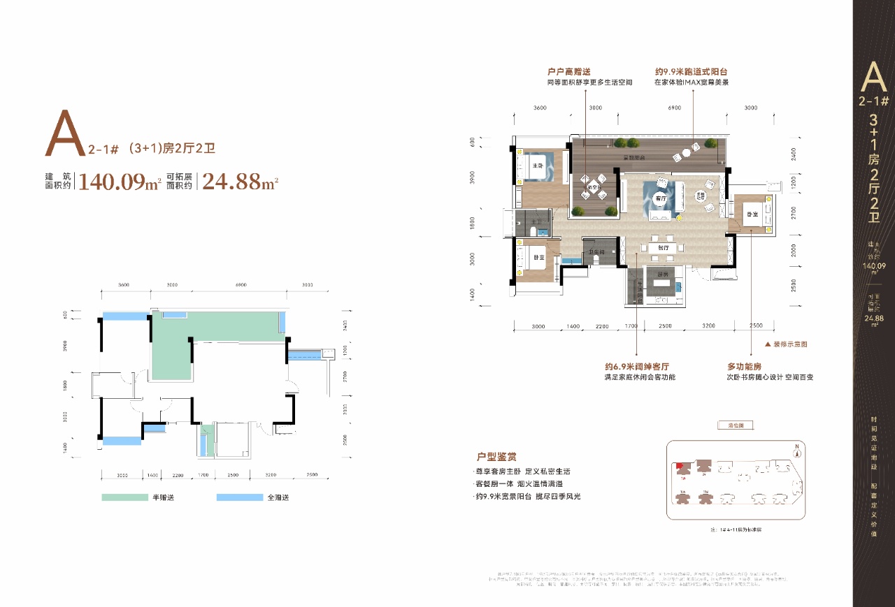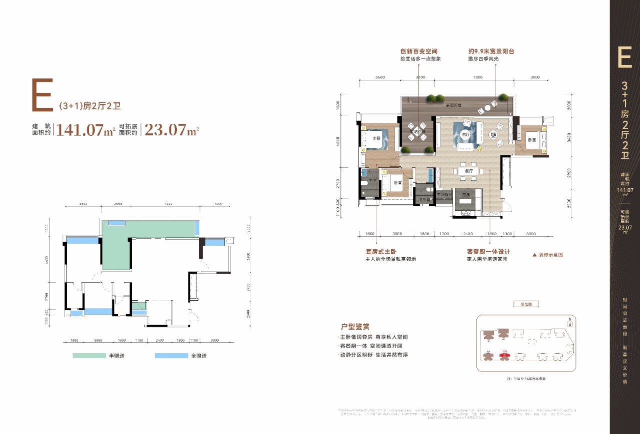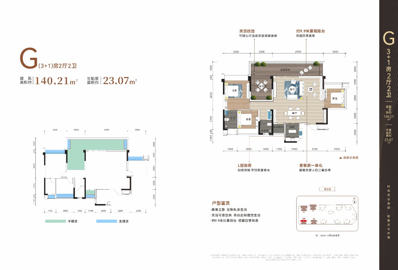 超高赠送 演绎理想奢居:匠心精筑108-189㎡高赠奢居,以约100%实用率突破空间极致。可打造改善N+1房,景观大阳台、客餐厨一体化大方厅,革新人居空间