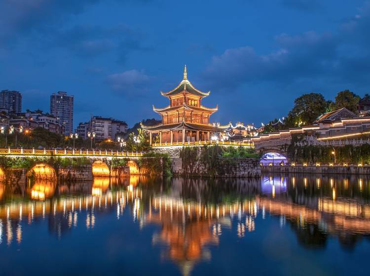人文景观:河滨公园、筑城广场、南明河、贵州民族文化宫(贵州省民族博物馆)、甲秀楼、贵州科学技术馆