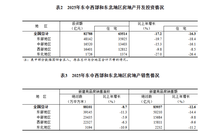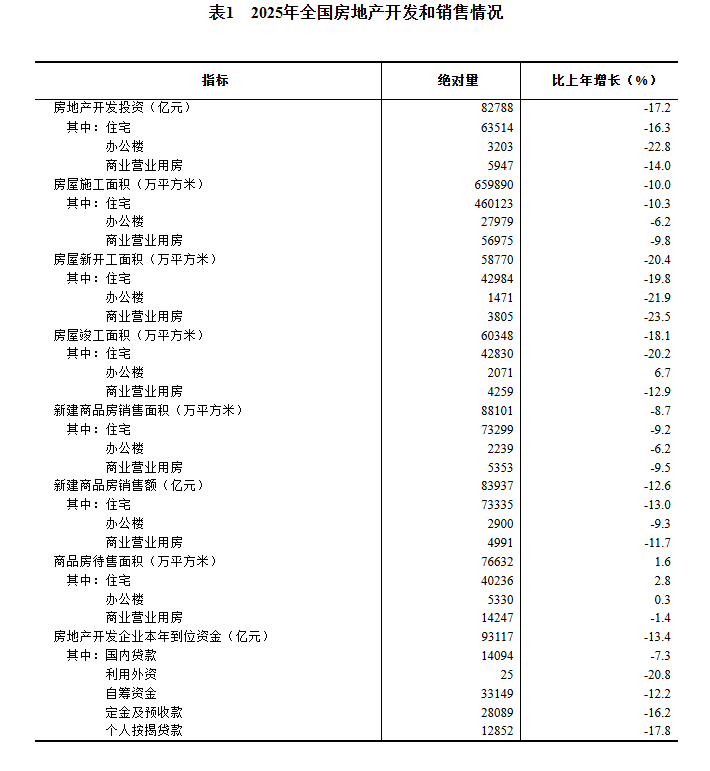 1月19日讯,国家统计局今日公告,2025年全国房地产开发投资82788亿元,比上年下降17.2%;其中,住宅投资63514亿元,下降16.3%。