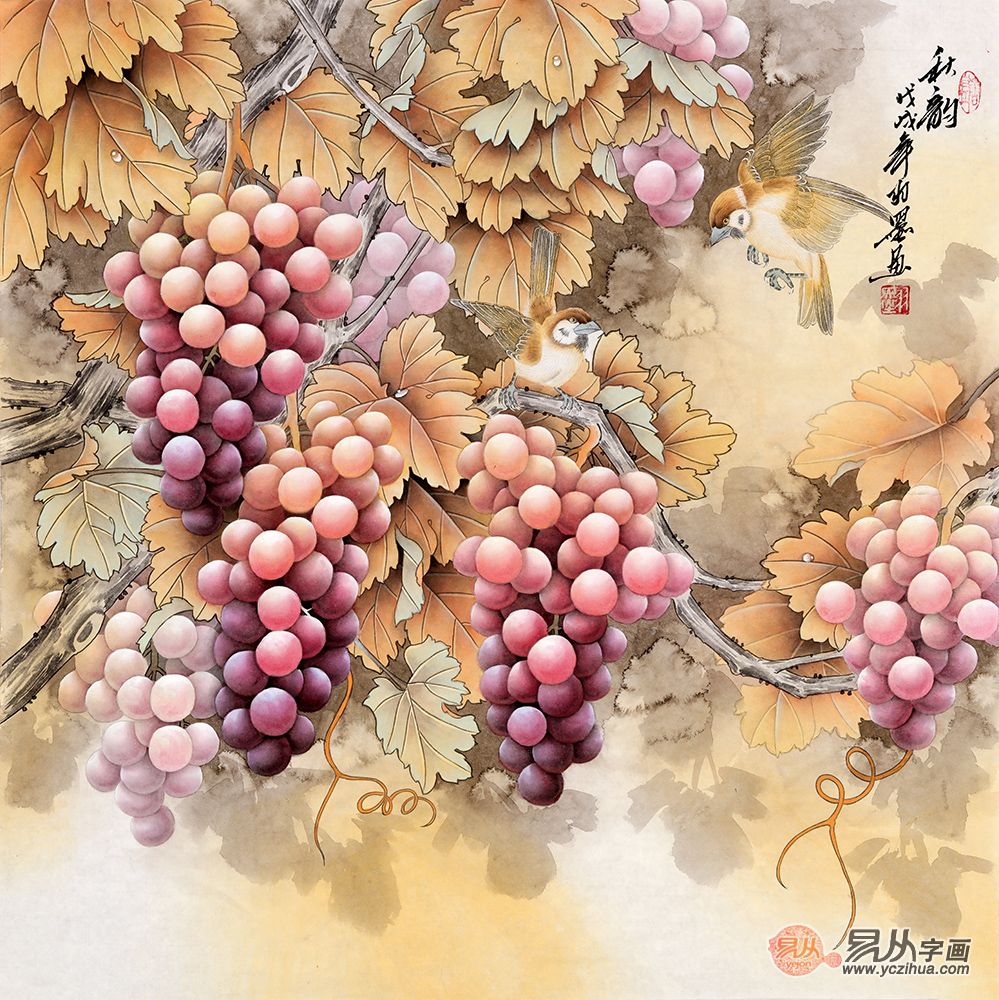 推荐作品:羽墨工笔葡萄图《秋韵》(作品来源:易从网)