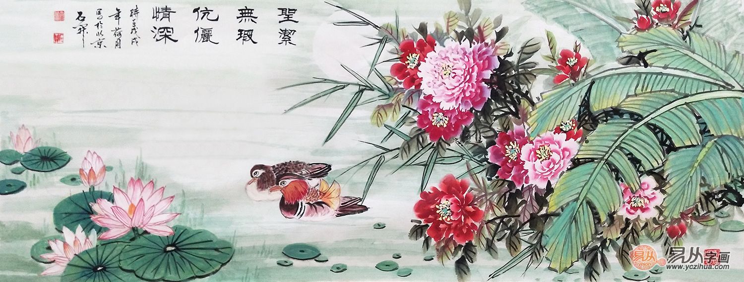 推荐作品:石开新品荷塘鸳鸯图《圣洁无暇 伉俪情深》(作品来源:易从网)
