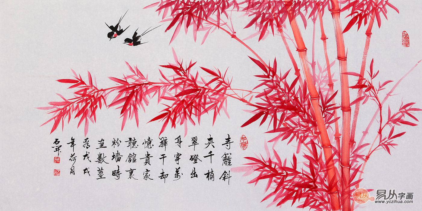 推荐作品:石开精品红竹画《竹林》(作品来源:易从网)