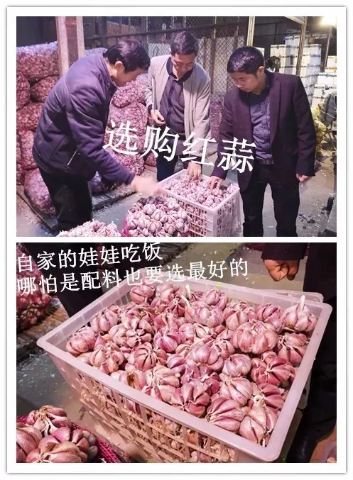 选购完蔬菜还要选购配菜,胥老师说,配菜我们也要买较好的,譬如蒜瓣,红蒜比白蒜香,味道好,所以我们炒菜都要选红蒜。