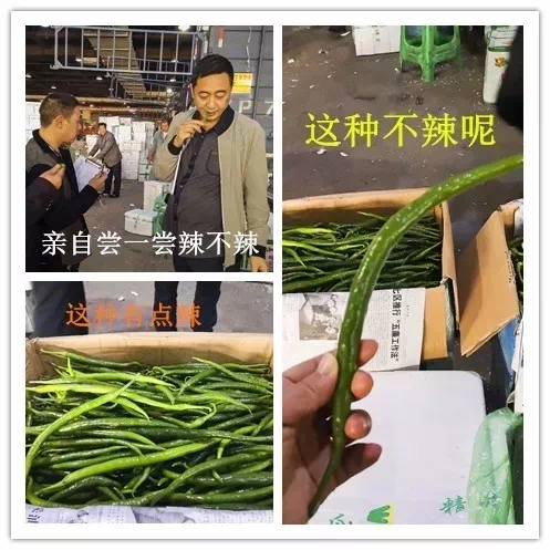 有的孩子不能吃辣,我们的青椒选购就很考验老师们了,辣的和不辣的都要分别采购一些,比例上是不辣的占多数(小编真滴是木有想到买个青椒都这样复杂啊),两位老师还要亲自尝一尝辣和不辣的程度。