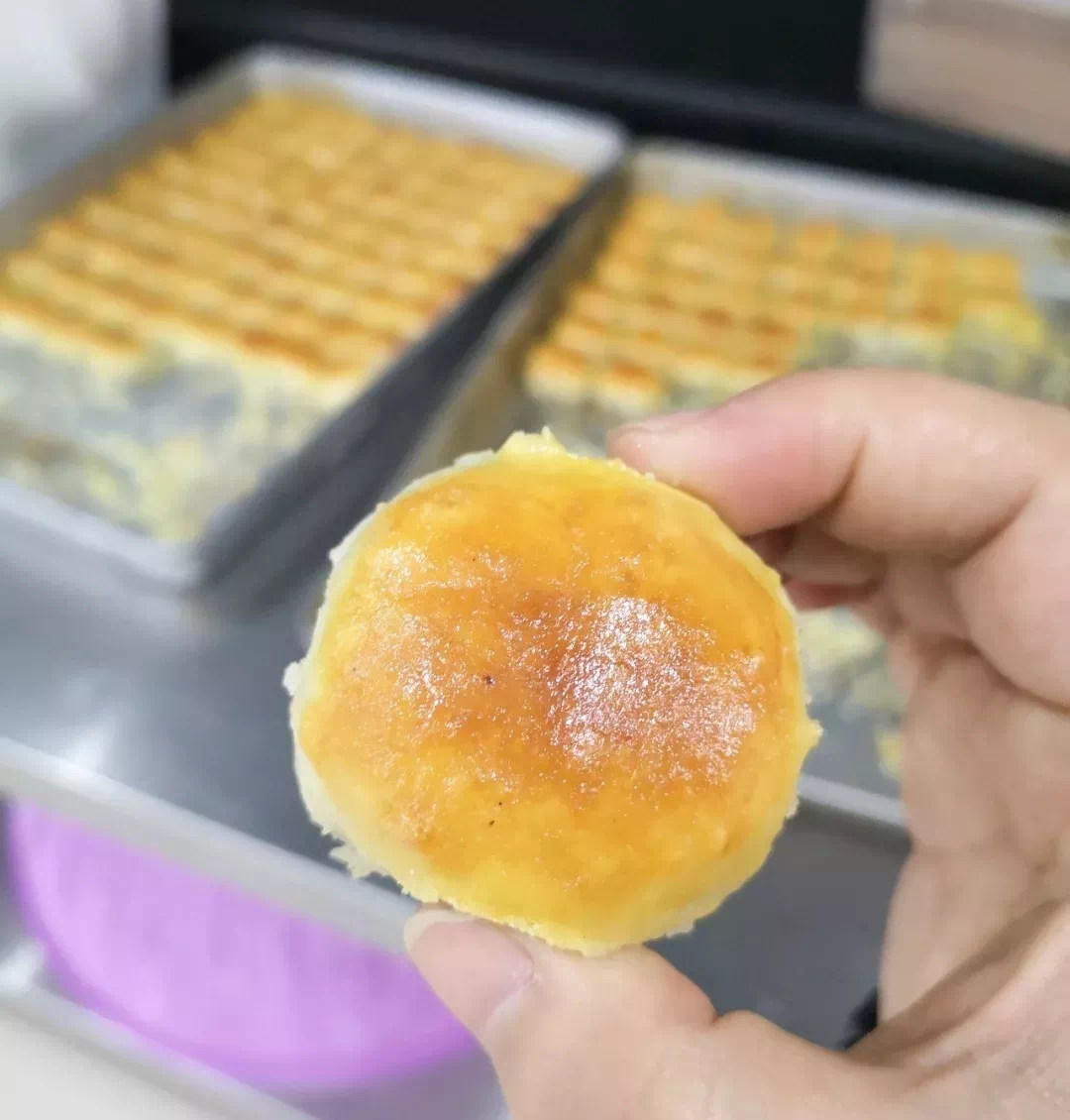 这是周二的早晨,相信眼尖的朋友已经看出来了,这就是上面的师傅做出来的莲蓉饼!