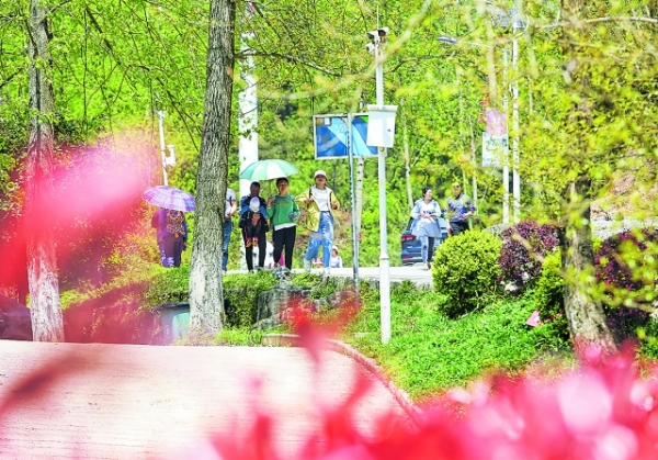 游客在乌当区枫叶谷景区游玩。
