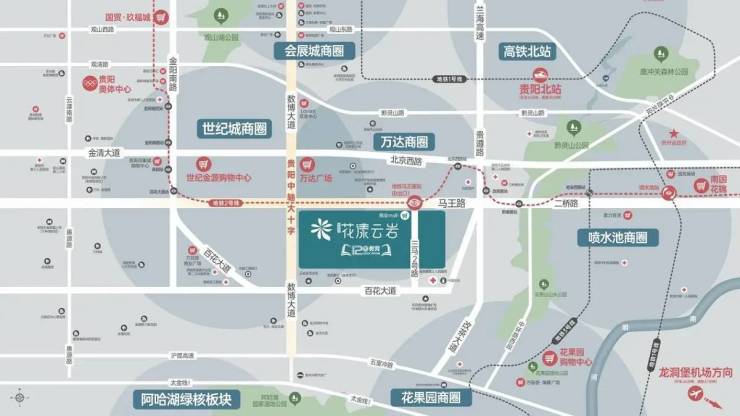 论地段,花漾云岩地处三马片区核心,坐享新老城区双重红利,紧邻数博万达商圈,周边还有贵州省第三人民医院和贵州医科大学附属肿瘤医院等医疗资源。更占据马王路与数博大道交汇黄金地段,且坐落于地铁2号线马王庙站之上,首期组团更紧邻A、B出入口,真正实现“家门口的地铁”,出行便利性与生活效率不言而喻。