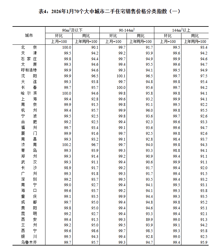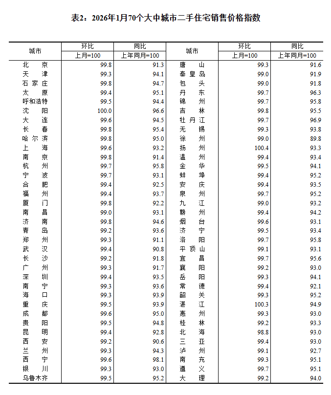 ——国家统计局城市司首席统计师王中华解读2026年1月份商品住宅销售价格变动情况统计数据