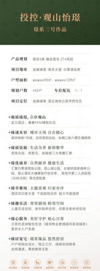 产品的本身,永远是打动人的最终理由。观山怡璟位于观山湖金融城南发展主轴,与高铁北站仅咫尺之遥,地铁1号线白鹭湖站真正实现步行可达,三纵六横路网体系高效联通全城。周边已形成成熟的城市功能圈,这里,是无需等待的未来,而是一种当下即享的城市生活。