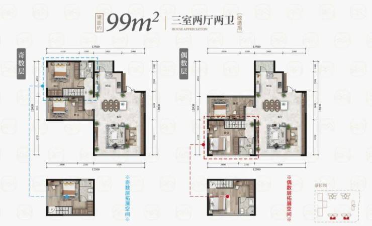 据悉,本次天瀑观山府项目释出的,是建面99平米和146平米两种跃层户型,按照此前规划,天瀑观山府应该还有3种户型待公布。