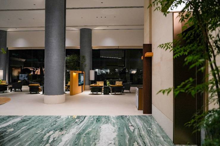 开放即运营的约5500㎡SFC超维会所,为业主带来一座多功能生活综合体。其艺术砖铺就的恢弘前场,古铜金、亚马逊绿等高级色调勾勒的奢石墙面,挑高约12米、横跨约40米的“V”型门庭,未进门便尽显尊贵与艺术审美。会所内部涵盖健身房、恒温泳池、音乐艺术厅、红酒雪茄吧、亲子课堂等15大主题、26个功能空间,不仅提供了多元的功能空间,还以场景催化有温度的人际联结。