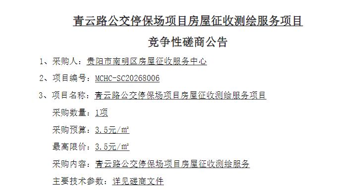 2025年12月31日,据贵州省招投标公共服务平台公告,青云路公交停保场项目 就房屋征收测绘服务公开招标 。