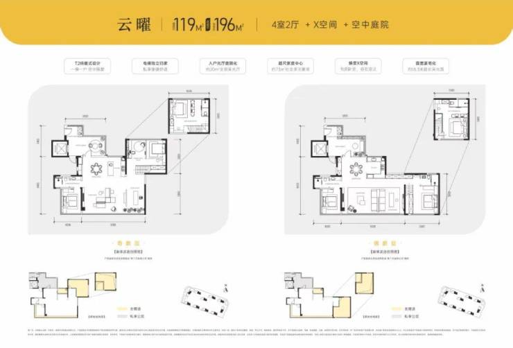 具体到户型上,二期提供建面105和119平米两种跃层户型。