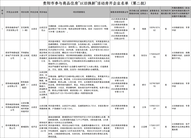 2026年1月29日,贵阳市住建局公示了 第二批参与贵阳市商品住房“以旧换新”房地产开发企业及项目名单 。