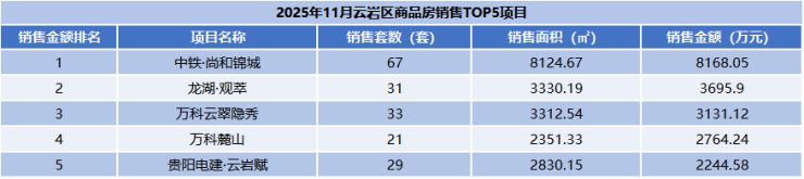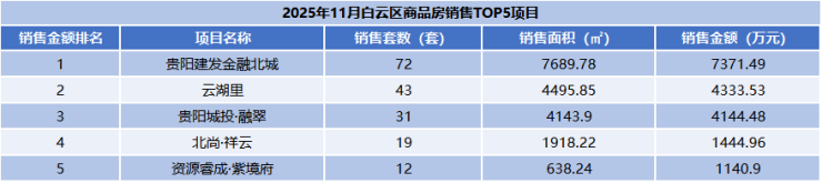 据贵州省房协发布的最新一期贵阳贵安楼市月报,2025年11月份,贵阳市(含三县一市)销售商品房2994套,销售面积33.73万方,销售金额31.79亿元;