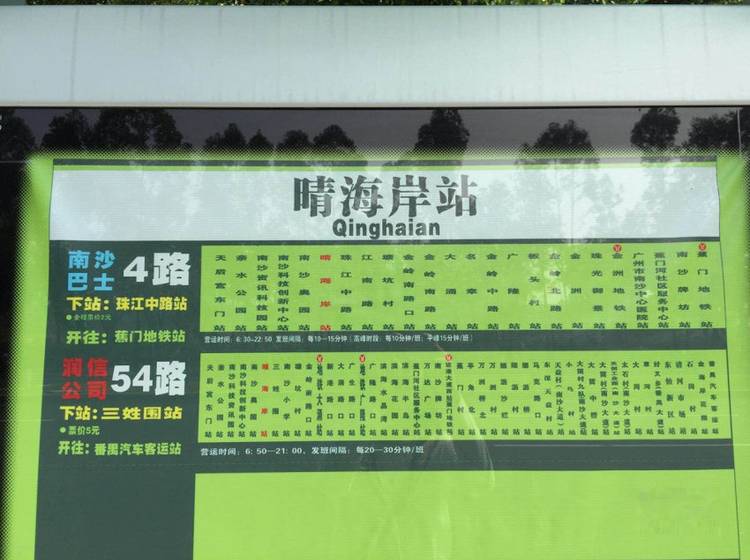 东湖洲花园A(公交站):番97路短线;番100路;东湖洲花园(公交站):番微公交3路;雁洲村(公交站):番97路短线;番100路;东湖洲花园C(公交站):番97路短线;番100路;番微公交3路;雁洲路口(公交站):番97路短线;番100路;沙龙尾(公交站):番28路;番禺汽车客运站(公交站):301路;南沙54路;南沙66路;番1路;番6路;番10路;番16路;番19路;番26路;番29路;番51B路;番68路;番93路;番97路短线;番97路(长线);番99路;番100路;番103路;番126路;番140路;番148路;番149路;番151B路;番151路;番153路;番160路;番161路;番162路;番微公交3路;番禺汽车客运站(亚运大道)(公交站):番1路;长坦村口(公交站):番83路;金海岸花园站(公交站):301路;南沙54路;南沙66路;番1路;番6路;番10路;番16路;番19路;番26路;番29路;番51B路;番68路;番93路;番97路短线;番97路(长线);番99路;番103路;番126路;番140路;番148路;番149路;番151B路;番151路;番153路;番160路;番161路;番162路;番微公交3路;