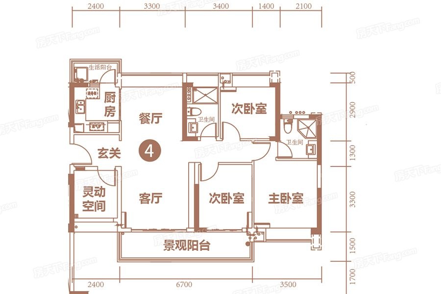 3室2厅2卫-2栋建面117平04户型