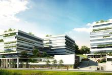 广州知识城国际领军人才集聚区位于中新(广州)知识城南起步区核心,凤凰湖北岸,总占地约200亩(13万余㎡),规划建筑面积26万余平方米。其中一期占地83亩(55111㎡),建筑面积14.5万㎡。按“绿色生态”、“产城融合“的规划理念,打造集院士工作站、国际领军人才创新创业园、科技孵化器等于一体的智力密集型创新创业园区,助力广州IAB、NEM战略实施。