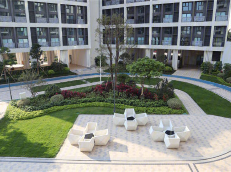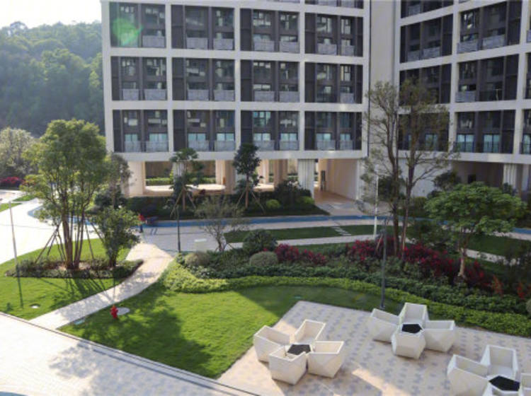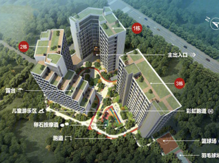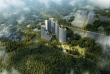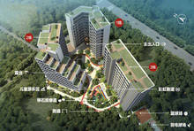 项目总高度50米,一共12层,分A、B、C三栋,其中A栋底层有商铺,未来将会成为社区的商业配套,以满足业主日常生活需求;B、C栋靠近自然山体。项目采取围合式设计,中央庭院设置中央园林,将延续碧桂园一脉相传的五星级高尔夫园林打造理念,打造五重立体园林。